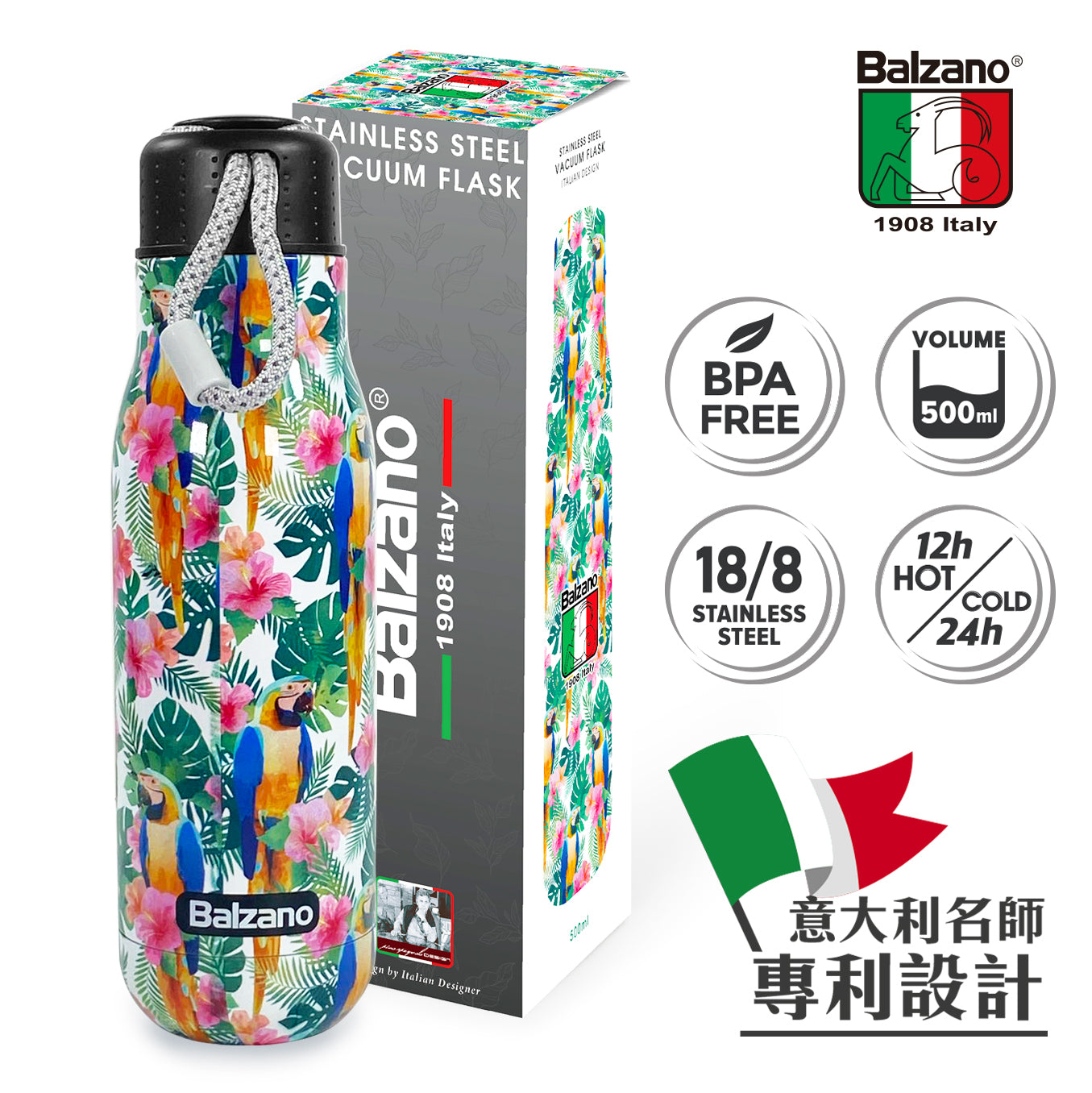 Balzano patented design, from an Italian designer Wide mouth, more thorough cleaning Lightweight 330g bottle, easy to carry anywhere